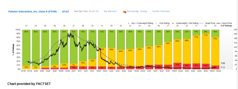 As the stock continued to decline, analysts finally began to throw in the towel. When PTON stock reached a low of $2.88 on August 14th of this year, there were only 2 of the 22 remaining analysts following PTON who had it rated as a buy. The rest had a hold or sell rating.
